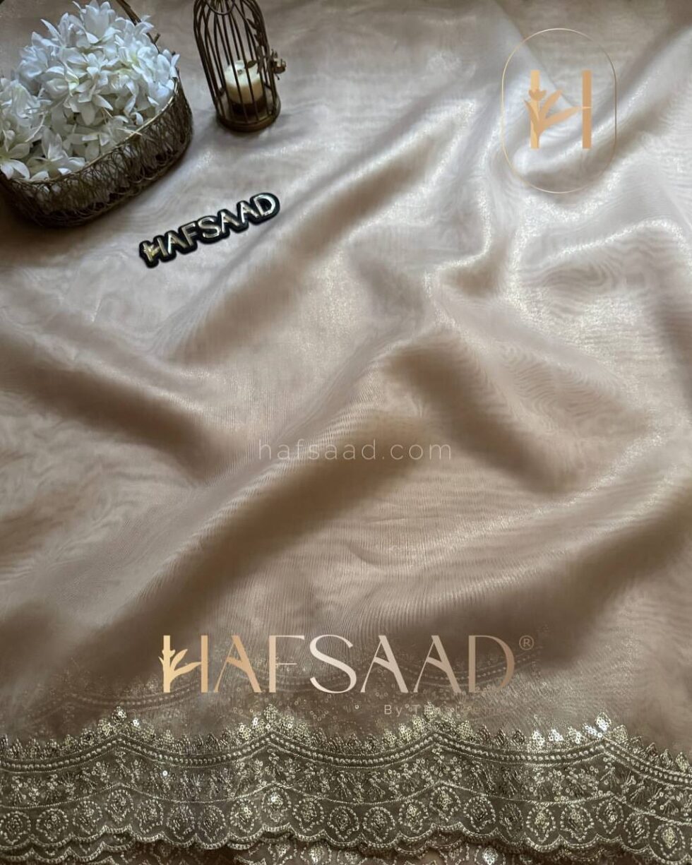 Presenting an exclusive designer creation from Nice Creation, Design No. NC – 5441. This stunning saree is crafted from Heavy Soft Nylon Organza, offering a graceful drape. It features intricate sequins and Zari embroidery work throughout, creating a dazzling effect. The ensemble is completed with a matching blouse in Soft Satin, adorned with coordinating Zari and sequins embroidery. This exquisite and radiant saree is available for ₹4,698.00, perfect for making a statement.